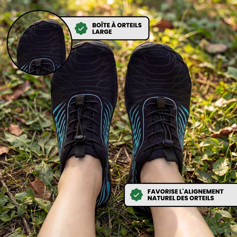 Le contact direct des pieds avec le sol dans les chaussures pieds nus améliore la circulation sanguine dans les pieds et les jambes. Cela contribue à une meilleure santé circulatoire, réduit la fatigue et aide à atténuer les symptômes de neuropathie.