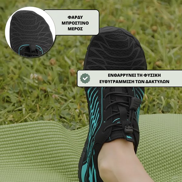 Τα ξυπόλητα παπούτσια προάγουν έναν φυσικό τρόπο βαδίσματος και ενδυναμώνουν τους μύες των ποδιών και των γαμπών σου, ενώ αποτρέπουν τους πόνους στο σώμα. Αυτό ωφελεί όσους υποφέρουν από πελματιαία απονευρωσίτιδα, μειώνοντας τους πόνους στα πόδια και προάγοντας την αποκατάσταση.