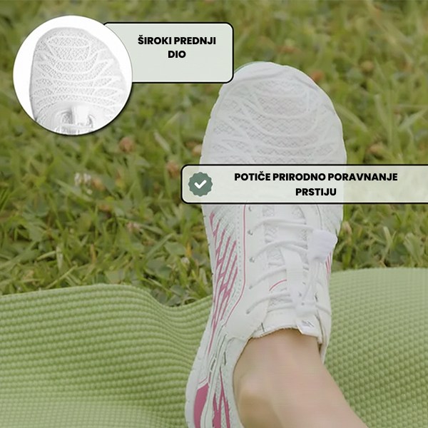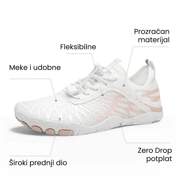 Širok prednji dio u kombinaciji s fleksibilnošću bosonogih cipela omogućuje prstima da se slobodno kreću i šire, čime se potiče snaga i pokretljivost stopala.