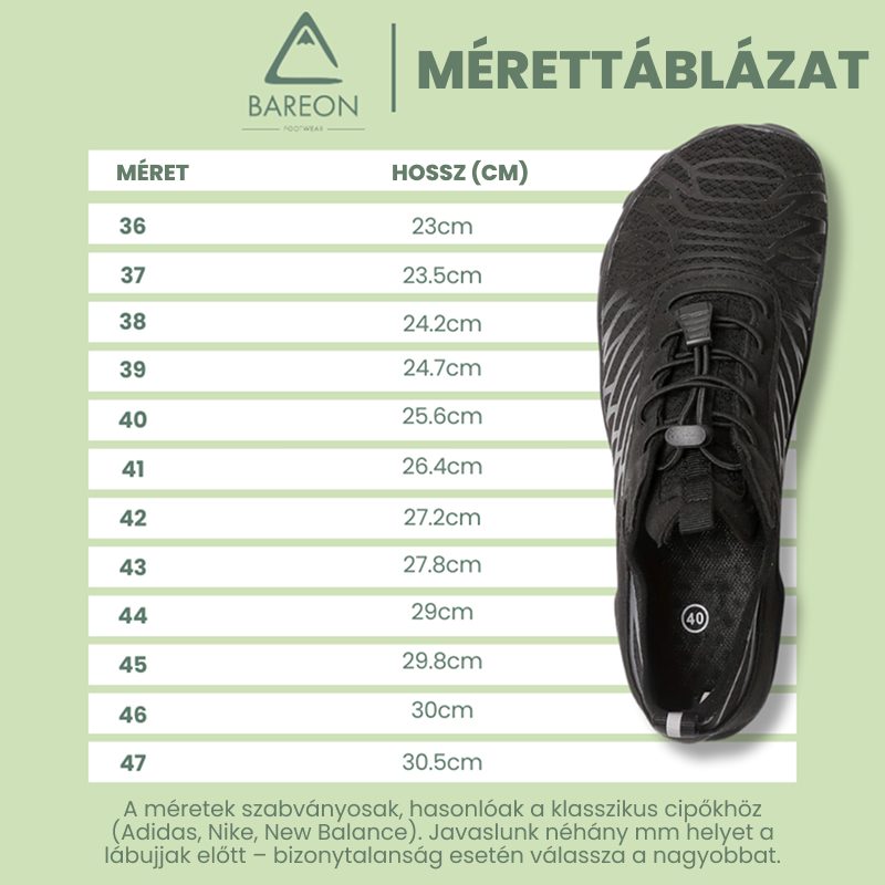 A Bareon Pro - Egészséges és csúszásmentes mezítlábas cipő különleges kialakítása lehetővé teszi, hogy a lábaid szabadon lélegezzenek és mozogjanak, ahogy a természet megalkotta. Nemcsak erősíti és rugalmasabbá teszi a talpboltozatot, hanem segít a testedet is természetes egyensúlyba és stabilitásba hozni.